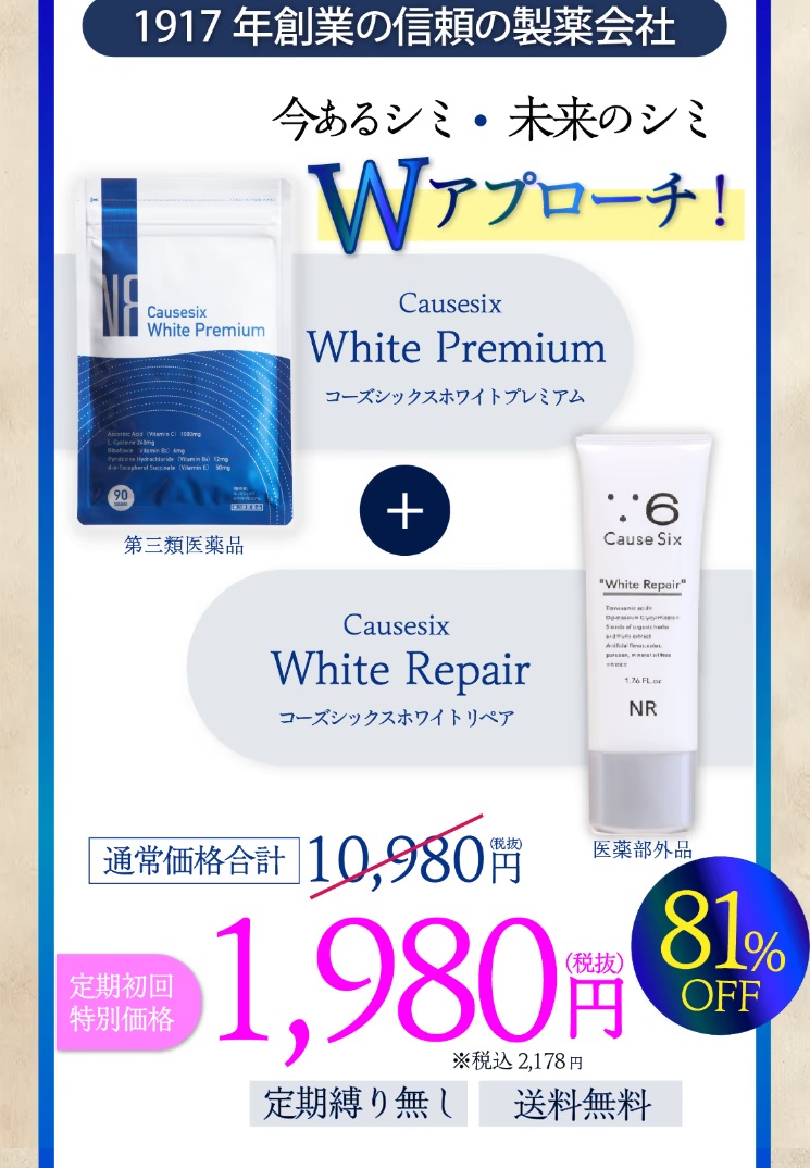 シミやくすみに悩む方の間で、近年注目を集めているのが、NR SHOPが展開する「コーズシックスホワイトリペア」と「コーズシックスホワイトプレミアム」です。